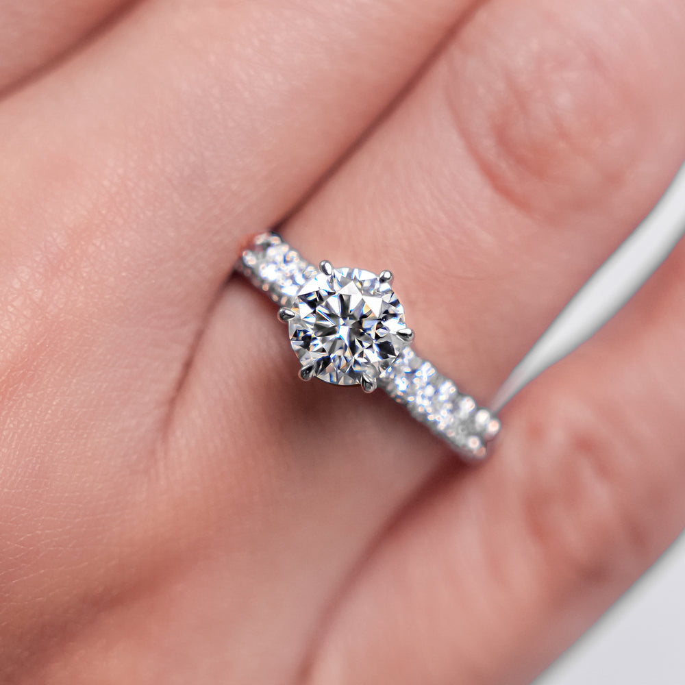 LAB DIAMOND 1CT ROUND BRILLIANT SIDE-STONES WHITEGOLD RING